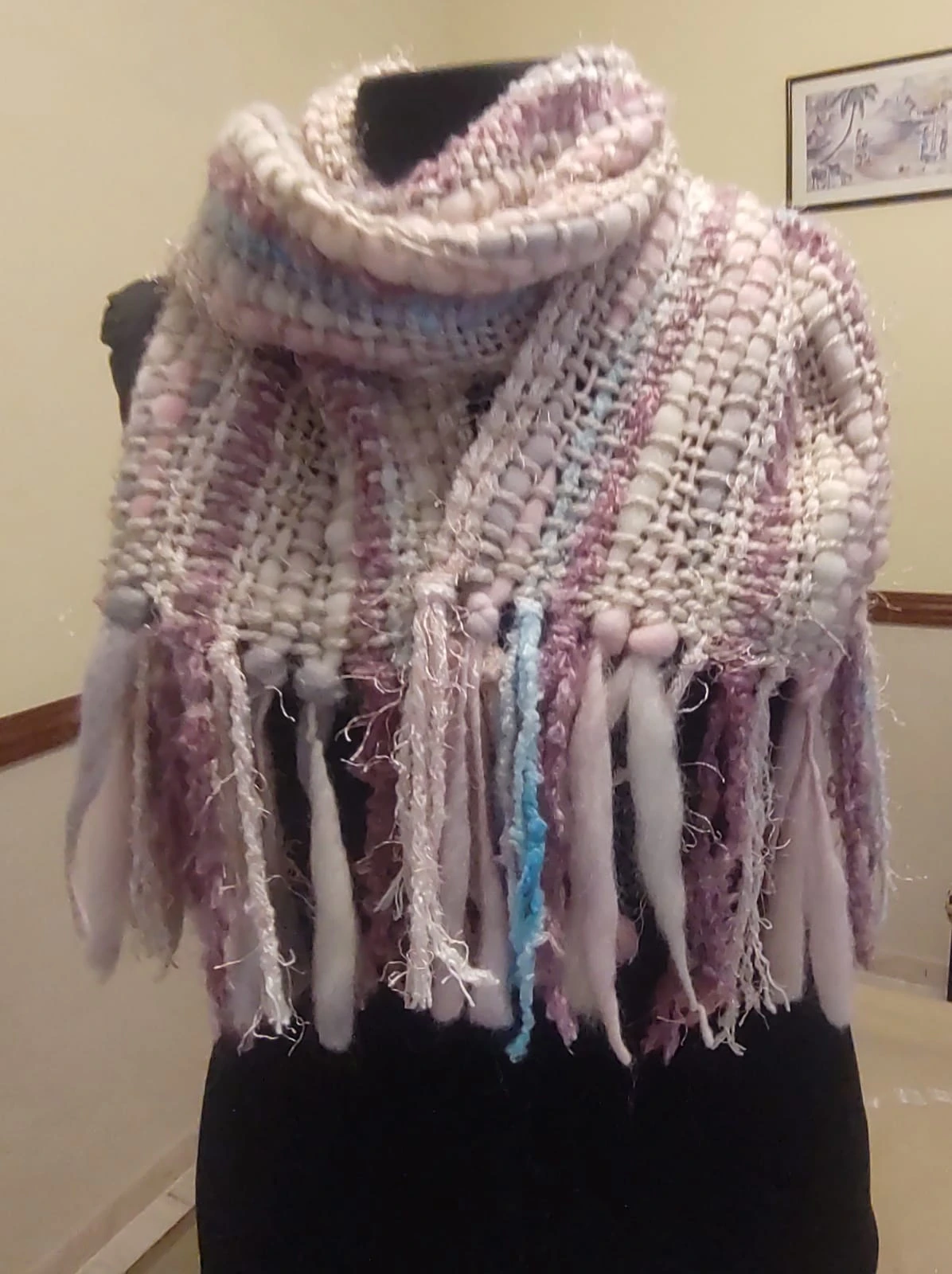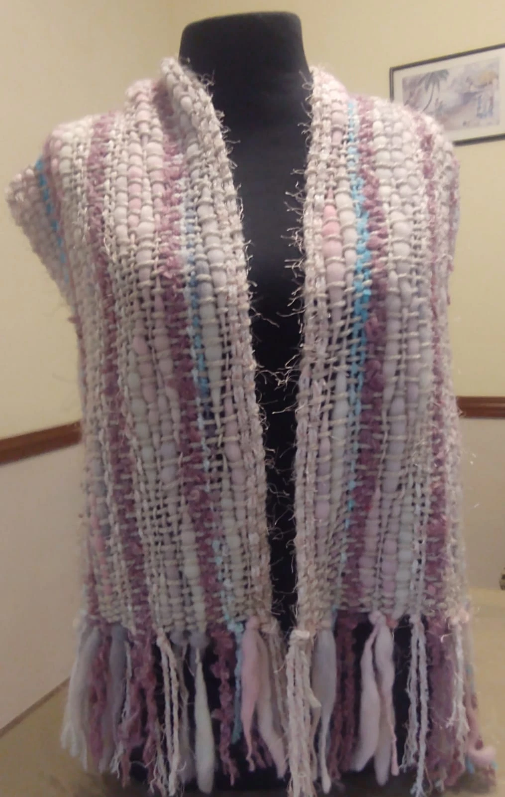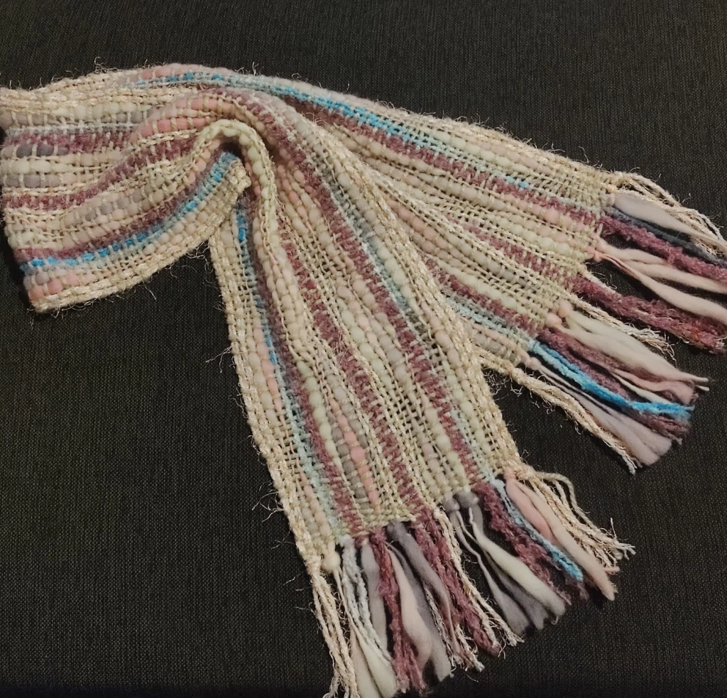 Su diseño fusiona fibras de distintos grosores, generando un efecto visual ondeado , con textura y movimiento natural. Los tonos suaves —rosado, crudo, celeste hielo y bordó— aportan calidez, armonía y un toque moderno a cualquier estilo.