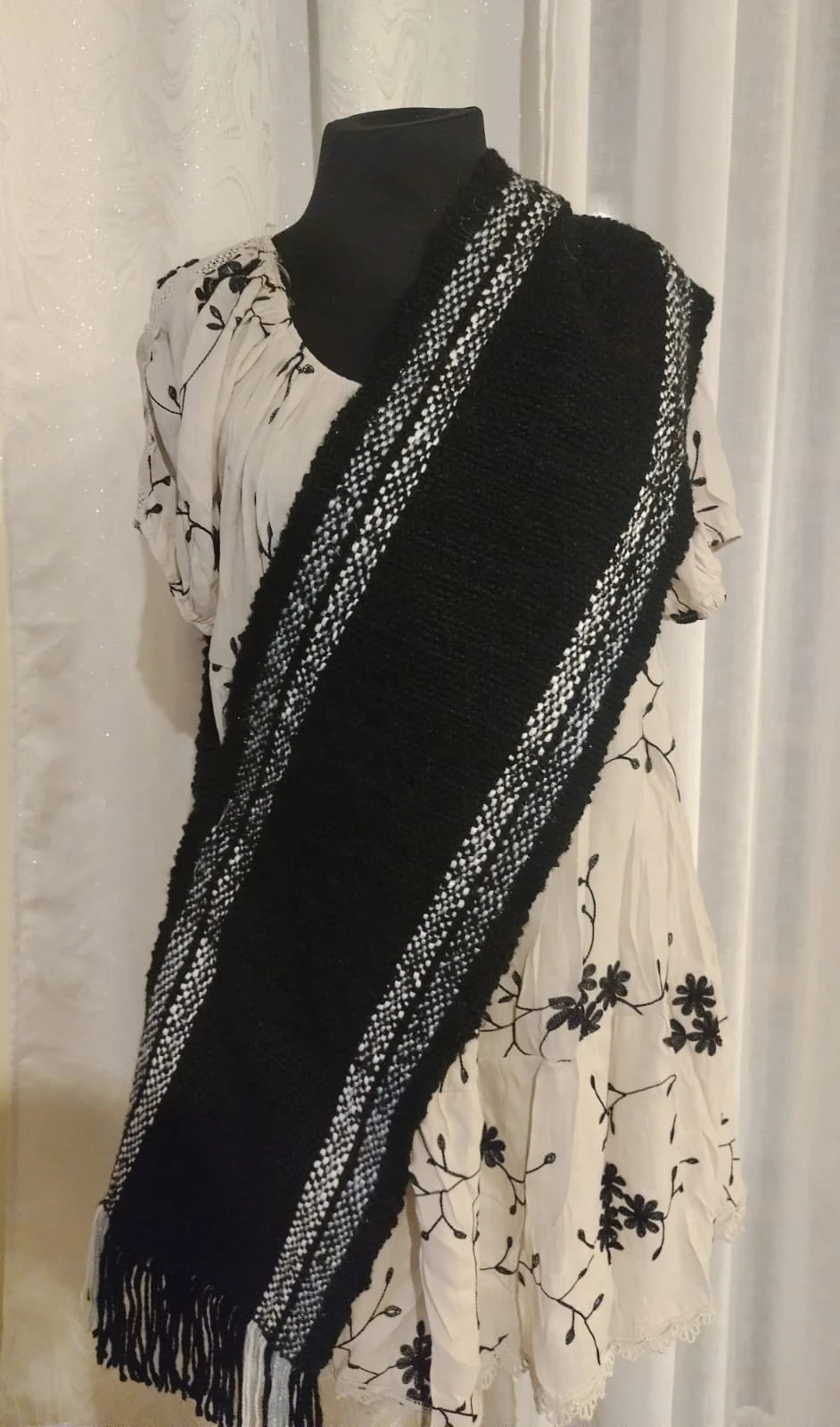🧣 Bufanda Negra tejida en TELAR de Peine — Calidez y Estilo Atemporal 🖤✨