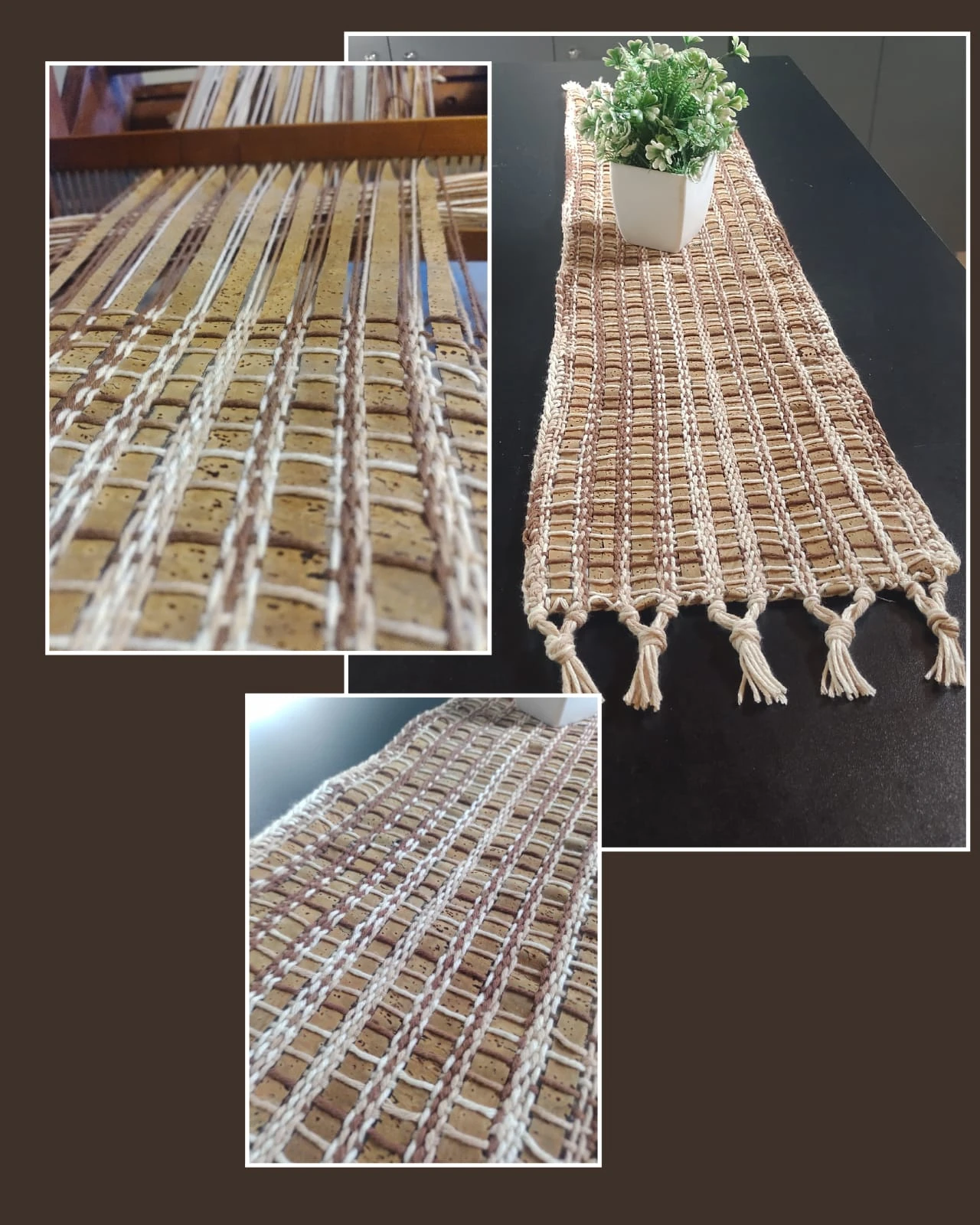 Camino de mesa tejido en telar + cuero de corcho original de Portugal 🇵🇹