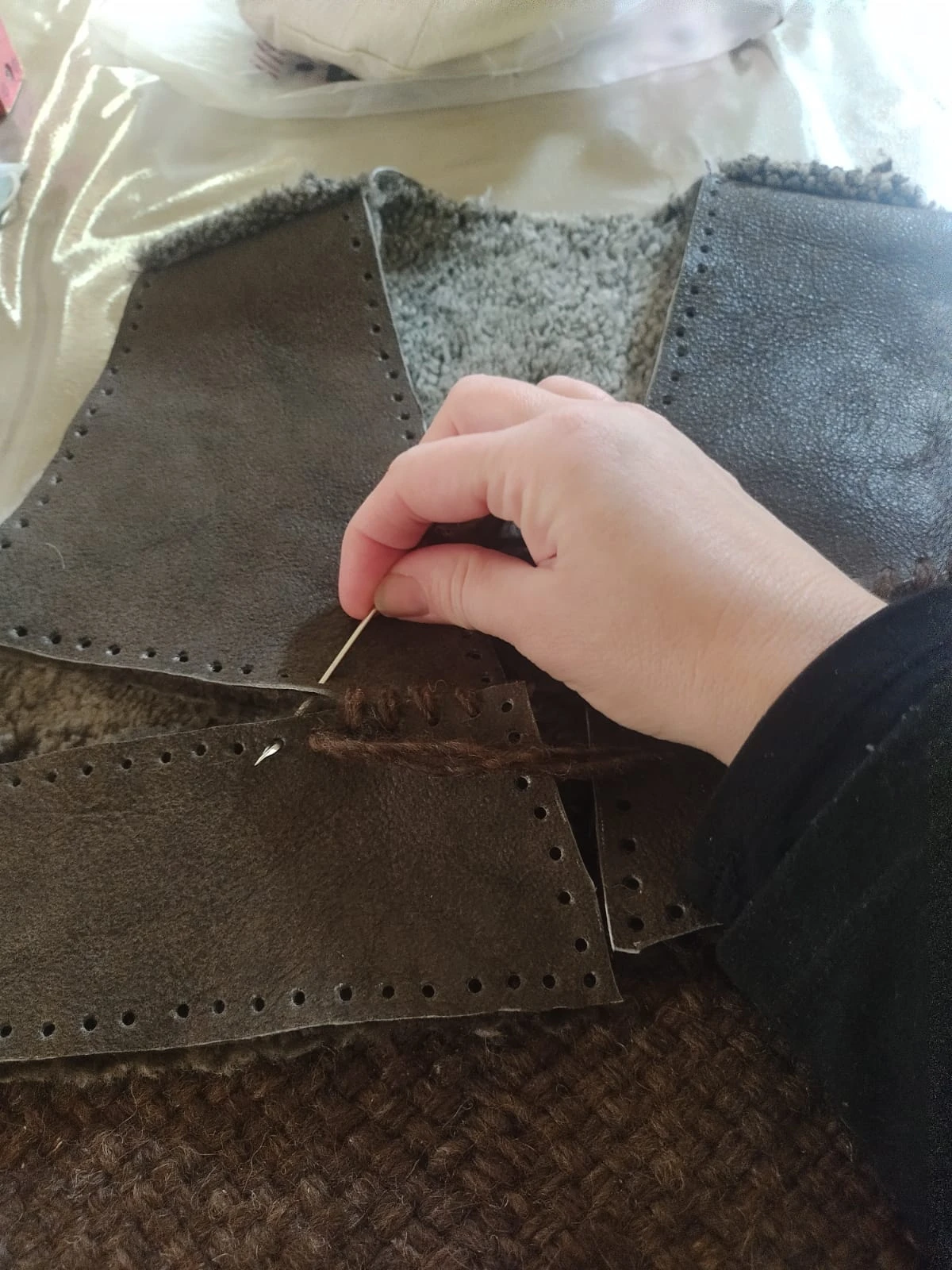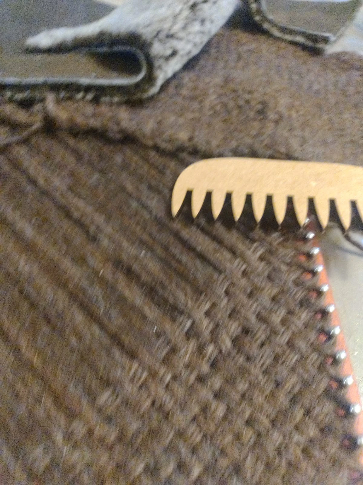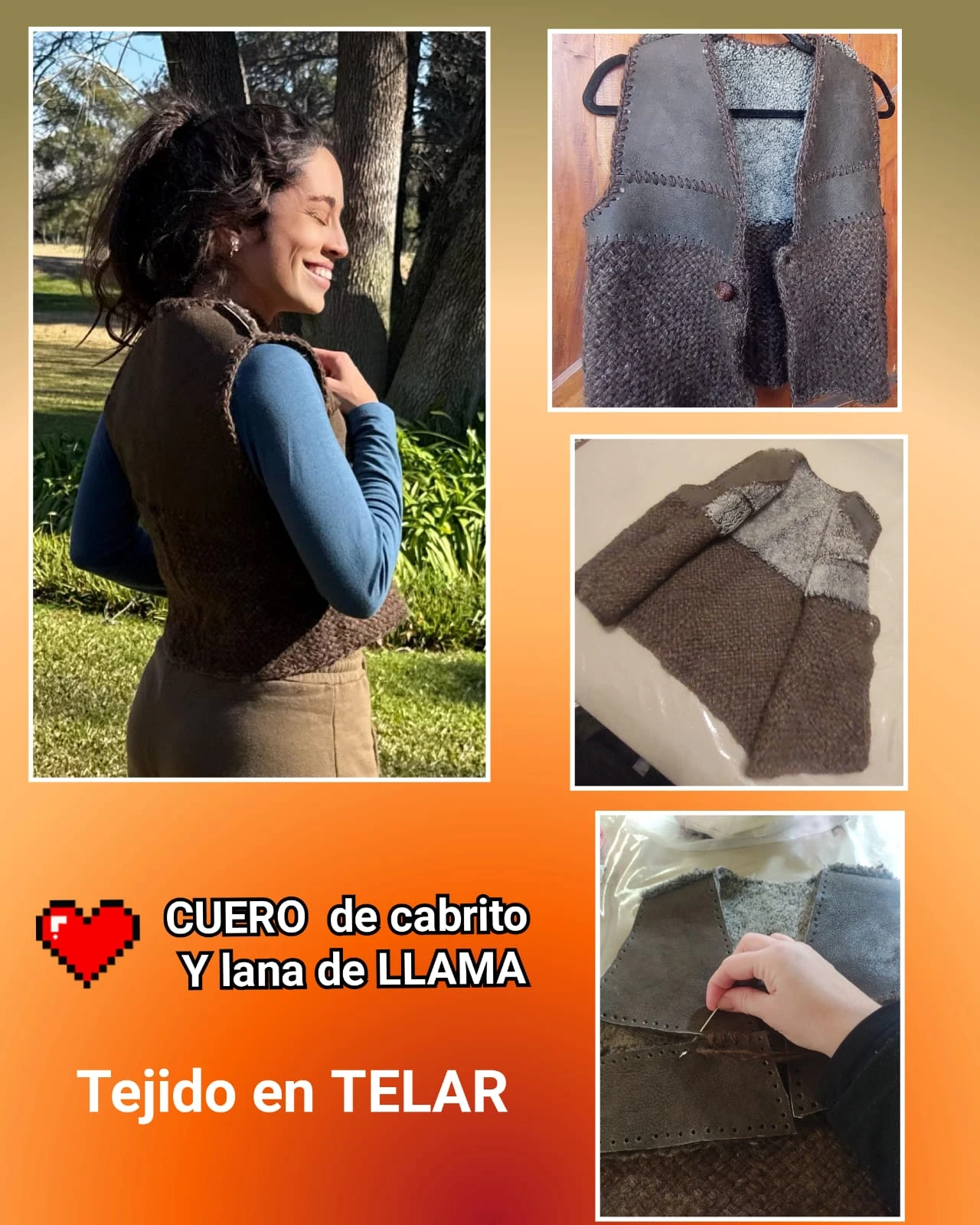 Tejido en TELAR DE PEINE con Lana de LLAMA Hilada a Mano + Cuero de Cabrito